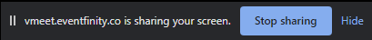 3. To stop screen sharing "stop sharing" from the bottom of your browser window or click the screen share button from the left side navigation once more.