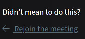 If this is done in error you may rejoin the room on the screen that follows by selecting "Rejoin the meeting" from the bottom left of the window.
